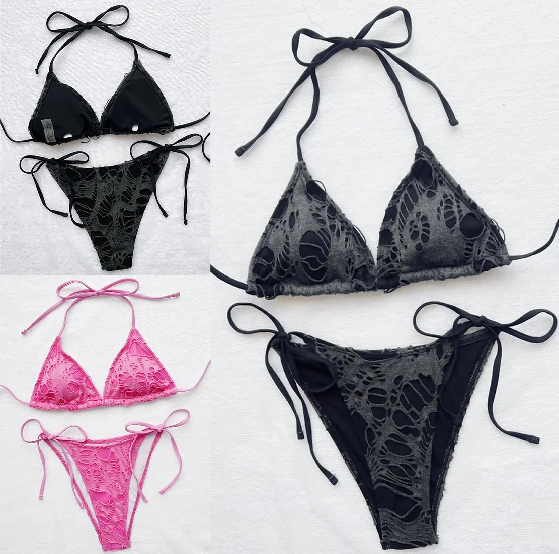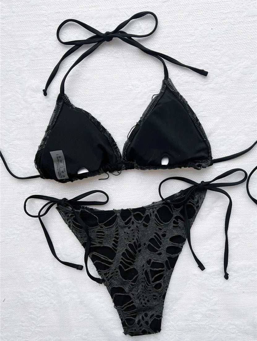This black ripped bikini features a unique "Back from the Dead" design, available in sizes small to extra large. With a choice of pink or black, this bikini offers a bold yet stylish look. Perfect for those who want to stand out and make a statement at the beach or pool.