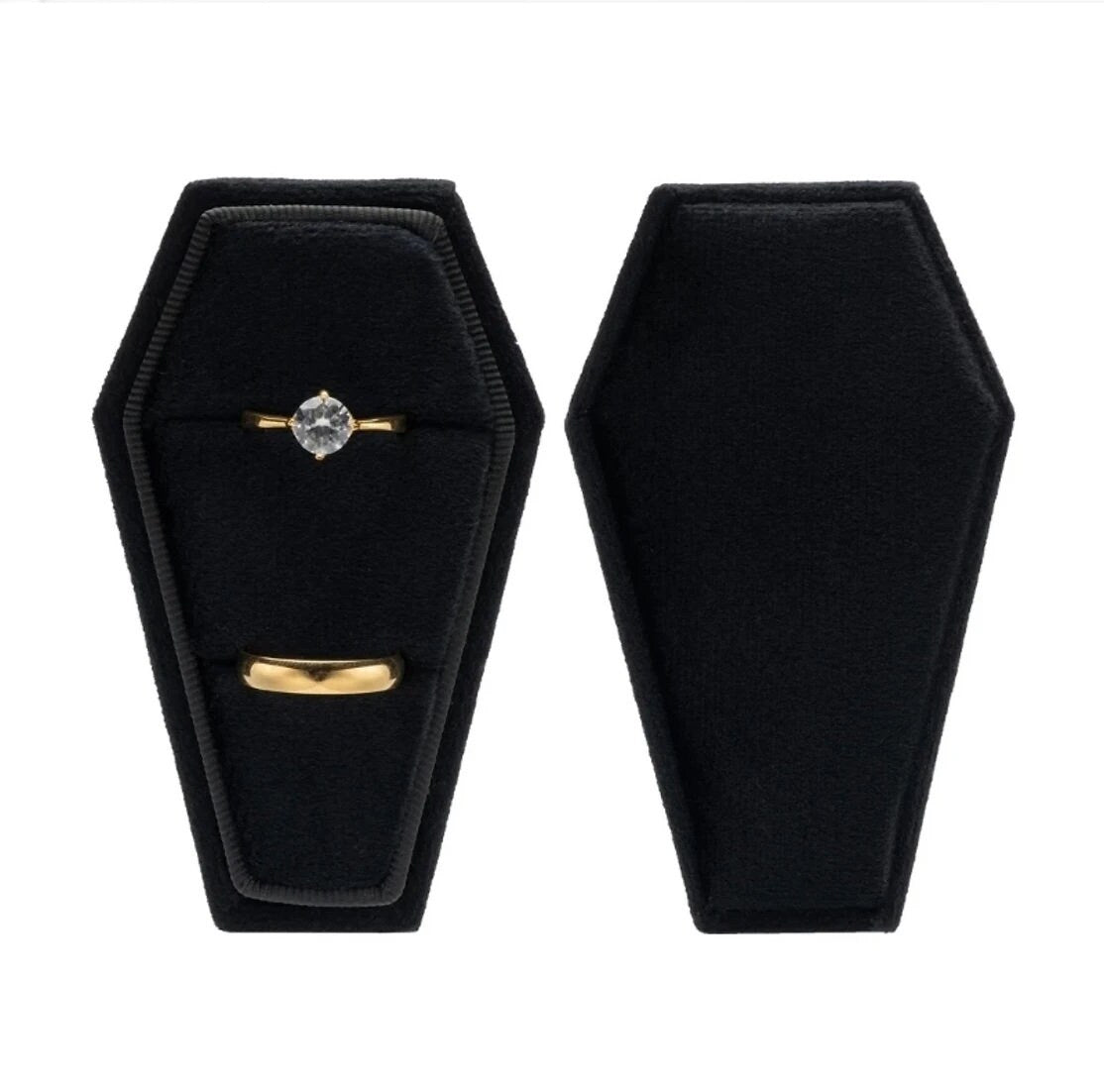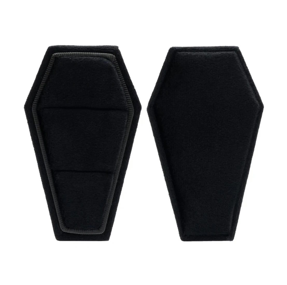 This exquisite Black Velvet Coffin Ring/Jewellery Case is perfect for keeping your rings safe and secure. It features a universal fit with dimensions of 3.6"×2.1"x1.7"/9.2×5.4×4.3cm, making it suitable for both man and woman rings of any style and size. Made with high-quality velvet, it provides a supple, smooth and comfortable texture while protecting your jewelry from any kind of damage. The package includes 1 pc of ring box (the rings not included).