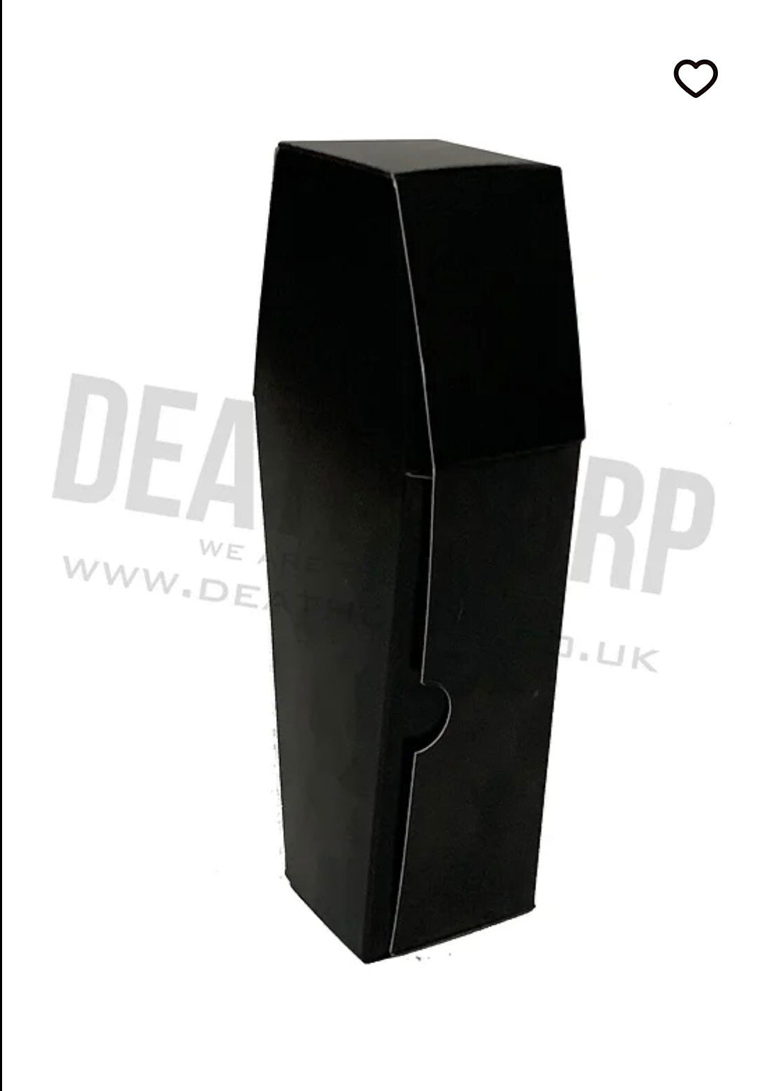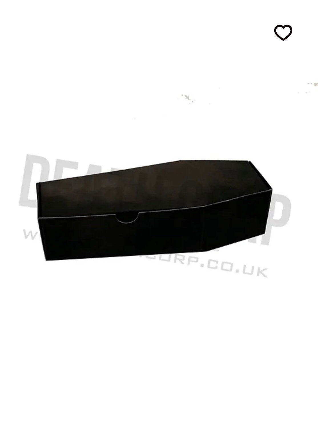 'Trick or Treat' in style with these black coffin cake/sweet boxes. Perfect for any Halloween parties and activities, these boxes are large enough to fit a generous number of sweets and chocolates etc. (see picture for better idea of size). Order today whilst stocks last to guarantee a happy Halloween!