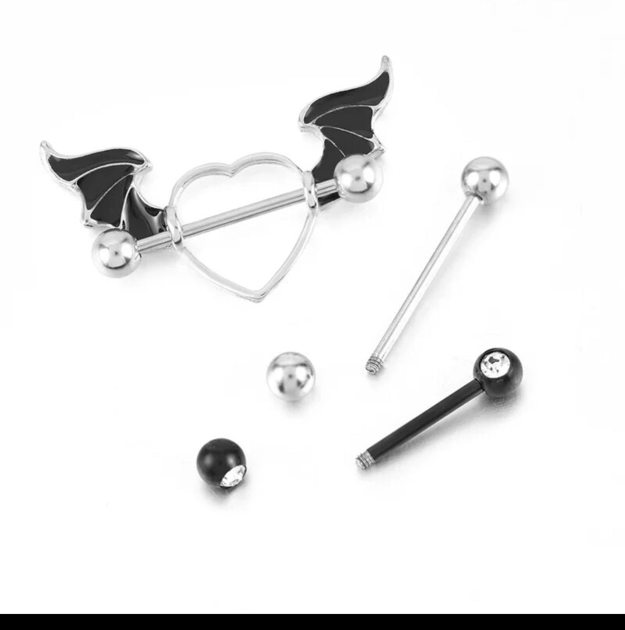 The Devil Heart Nipple Bar is a bold and distinctive piece designed to elevate your body jewelry collection. Featuring a striking winged devil heart motif, this nipple bar embodies edgy style and confident self-expression. Crafted with a 14G (1.6mm) gauge, it ensures a comfortable and secure fit suitable for most piercings. Made from quality materials, this piece combines durability with eye-catching design, making it perfect for those who want to showcase their daring personality. Whether for everyday wear or special occasions, the Devil Heart Nipple Bar adds a powerful statement to your look.