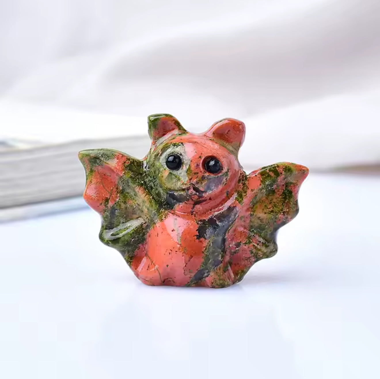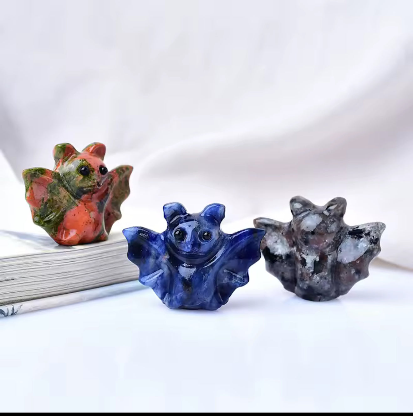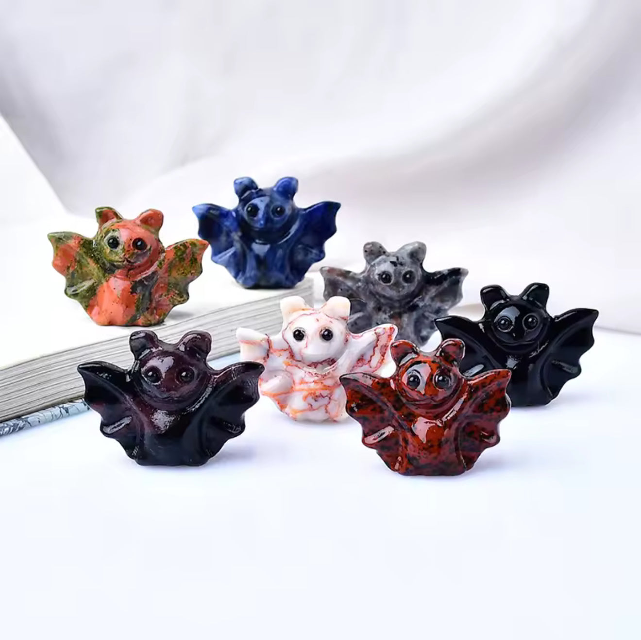 Add a touch of whimsy and enchantment to your space with these handcrafted crystal bat figurines. Made from a variety of natural gemstones, each bat is meticulously carved to showcase the unique beauty of the stone.