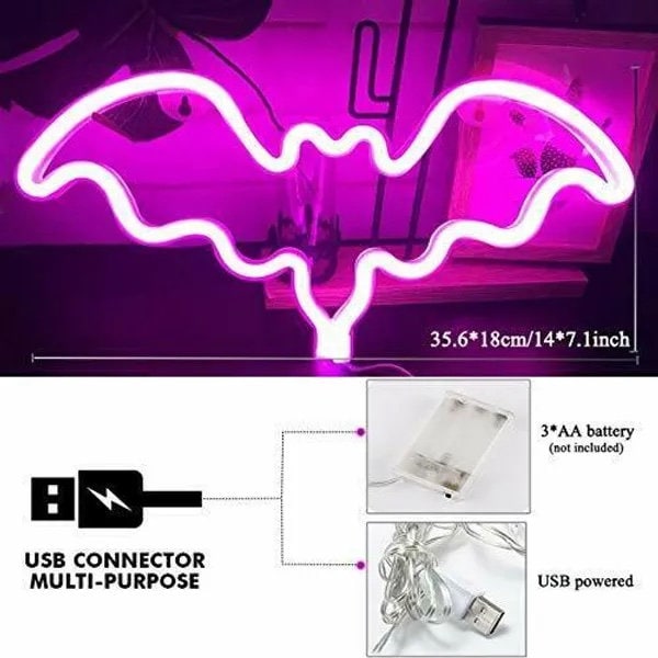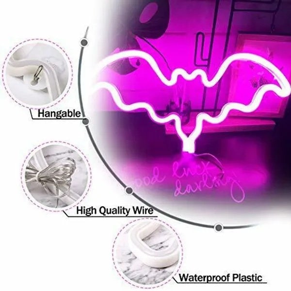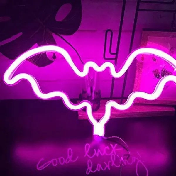 This NEON bat light is perfect for setting the mood in any bedroom, living room, or even for a fun game room. It features an eye-catching neon blue design that will look great in any space. With a low power consumption, this bat light is energy-efficient and easy to install. Its beautiful neon glow will make any room look unique and inviting. Get your NEON bat light today and enjoy the fun and relaxing atmosphere it creates