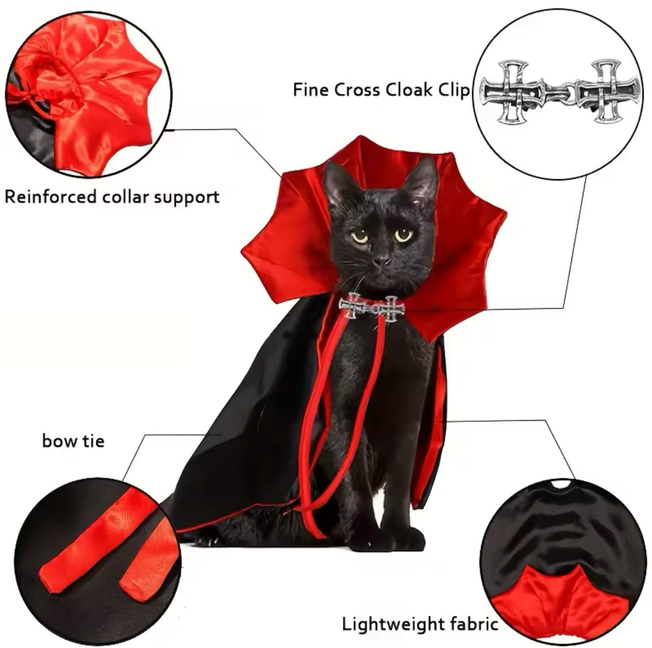 Transform your feline friend into a charming and stylish vampire with the Purrsfurartu cat cape. Made specifically for cats, this cape will add a touch of mystery and flair to your pet's appearance. Give your furry companion the perfect accessory for Halloween or dress-up parties.