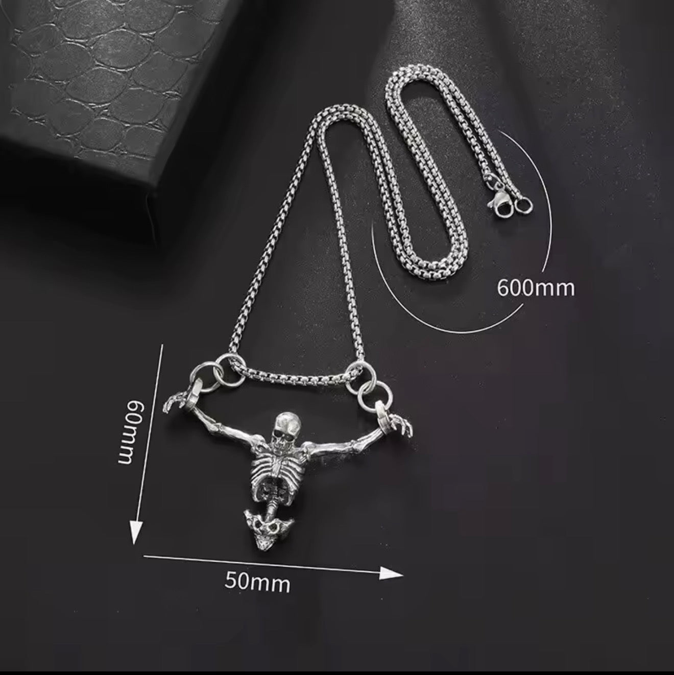 Expertly crafted with detailed bone structure and a rugged metallic finish, every element reflects bold character and raw attitude. The unique suspended design creates movement and visual impact, making it more than just a necklace — it’s a statement of inner strength.