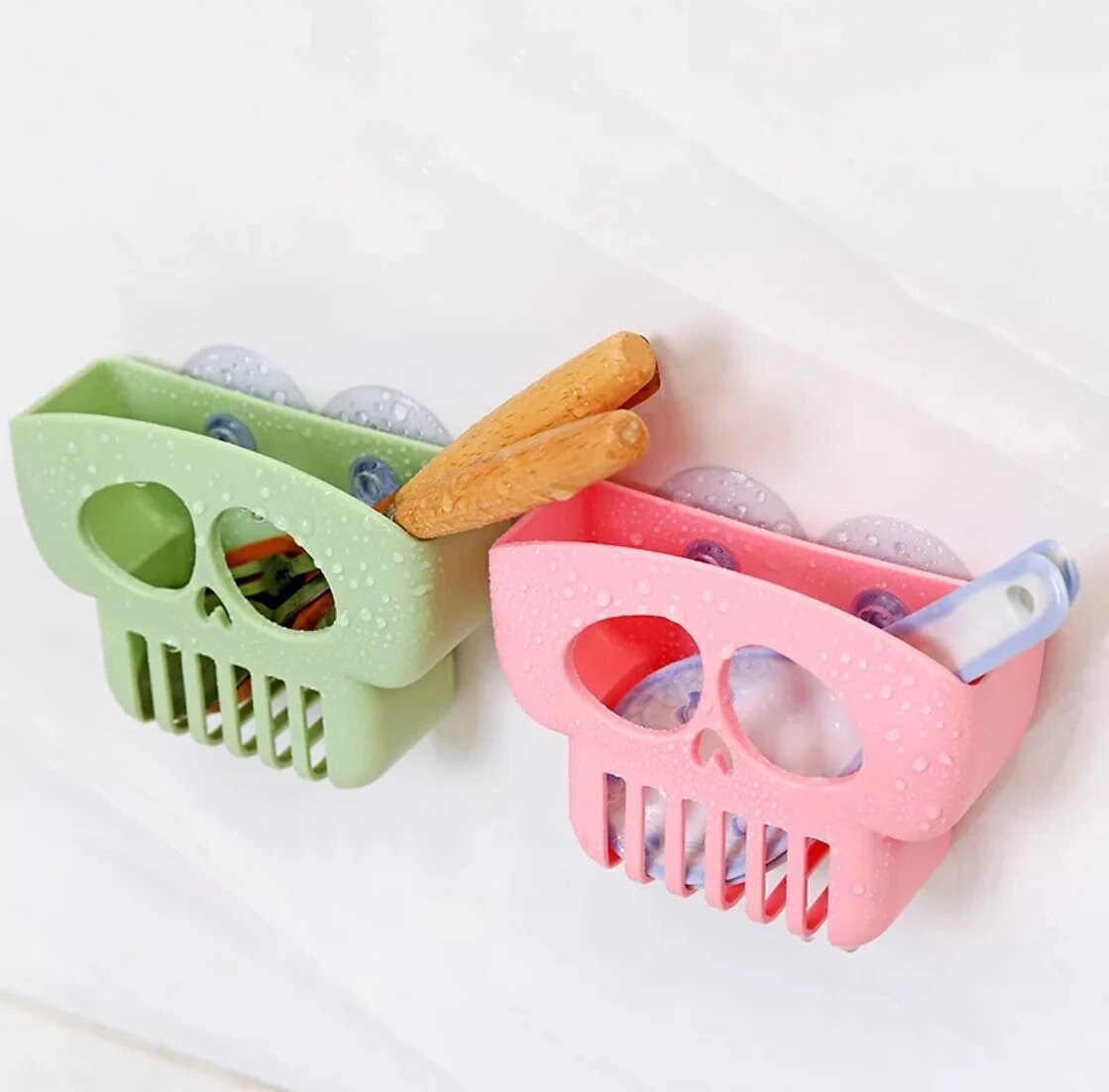 This Skull Sponge Holder is made of high quality PP material, with a sleek and stylish design that will add a unique touch to your kitchen. \The holder has vivid colors and measures 10*7*3.5CM.