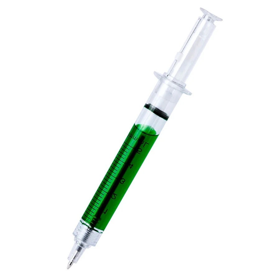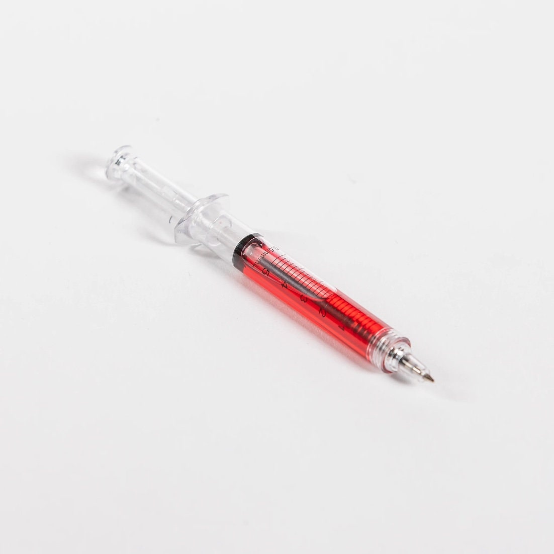 The ideal costume accessory for the doctor or the horror nurse: The ballpoint pen syringe is an indispensable companion. With it you have the perfect accessory when you go as a horror doctor to a Halloween party or a motto party. The bloody syringe as a ballpoint pen, which looks as if you have just drawn blood from someone, makes you a credible hobby doctor. Disguised as a doctor, you can write down the phone number of your new conquest right away.