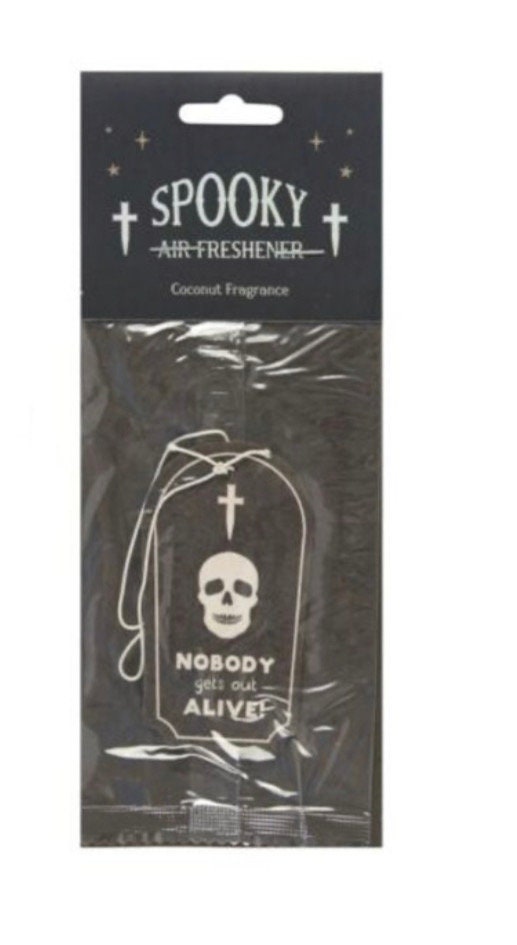 This Spoopy tomb stone Air Freshener is the perfect choice for adding a spooky twist to any home. It is made with a unique coconut fragrance and features a gothic tombstone design that is sure to add a touch of horror to any room. The air freshener is made with natural ingredients and is suitable for all types of spaces, from cars to homes. It comes with a unique coconut scent that is both refreshing and mysterious at the same time. Add a spooky atmosphere to your home with this unique and eerie air freshener.